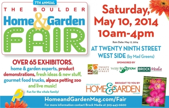 Boulder Home and Garden Fair is now May 16th 6May 2015Add a comment Boulder Home and Garden Fair is now May 16th Source: www.windowsforyourhome.com Share this: Click to share on LinkedIn (Opens in new window) LinkedIn Click to share on Reddit (Opens in new window) Reddit Click to share on X (Opens in new window) X Click to share on Tumblr (Opens in new window) Tumblr Click to share on Pinterest (Opens in new window) Pinterest Click to share on Pocket (Opens in new window) Pocket Like Loading... Related